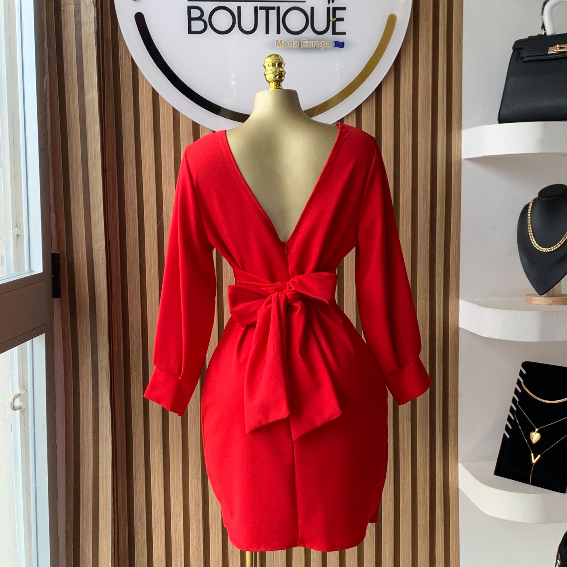 Vestido Vermelho Elegante Manga Longa