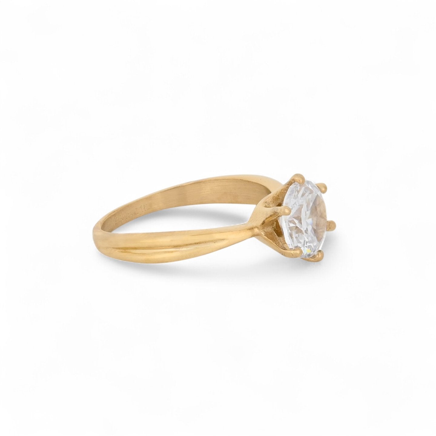 Anel solitário elegante em aço inoxidável com pedra brilhante. Design clássico e atemporal, disponível em acabamento dourado e prateado. Perfeito para uso diário ou ocasiões especiais ou para pedidos de namoro e Noivado...!