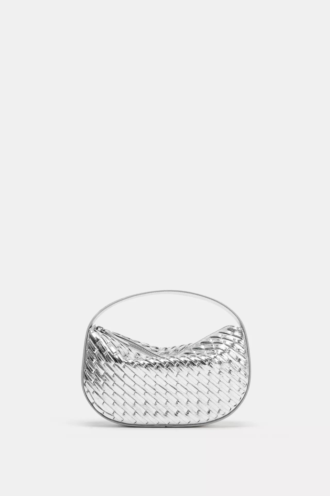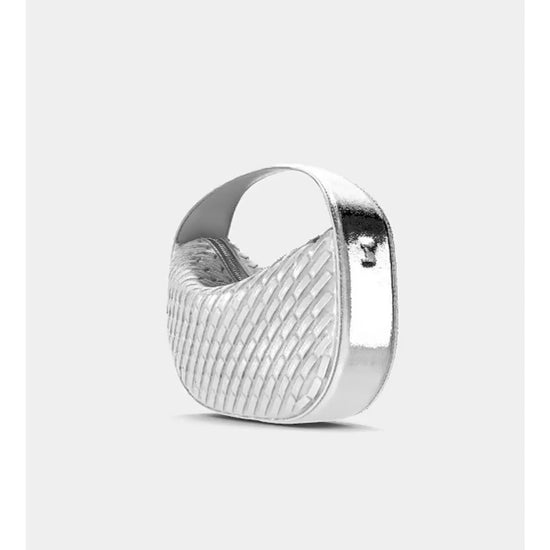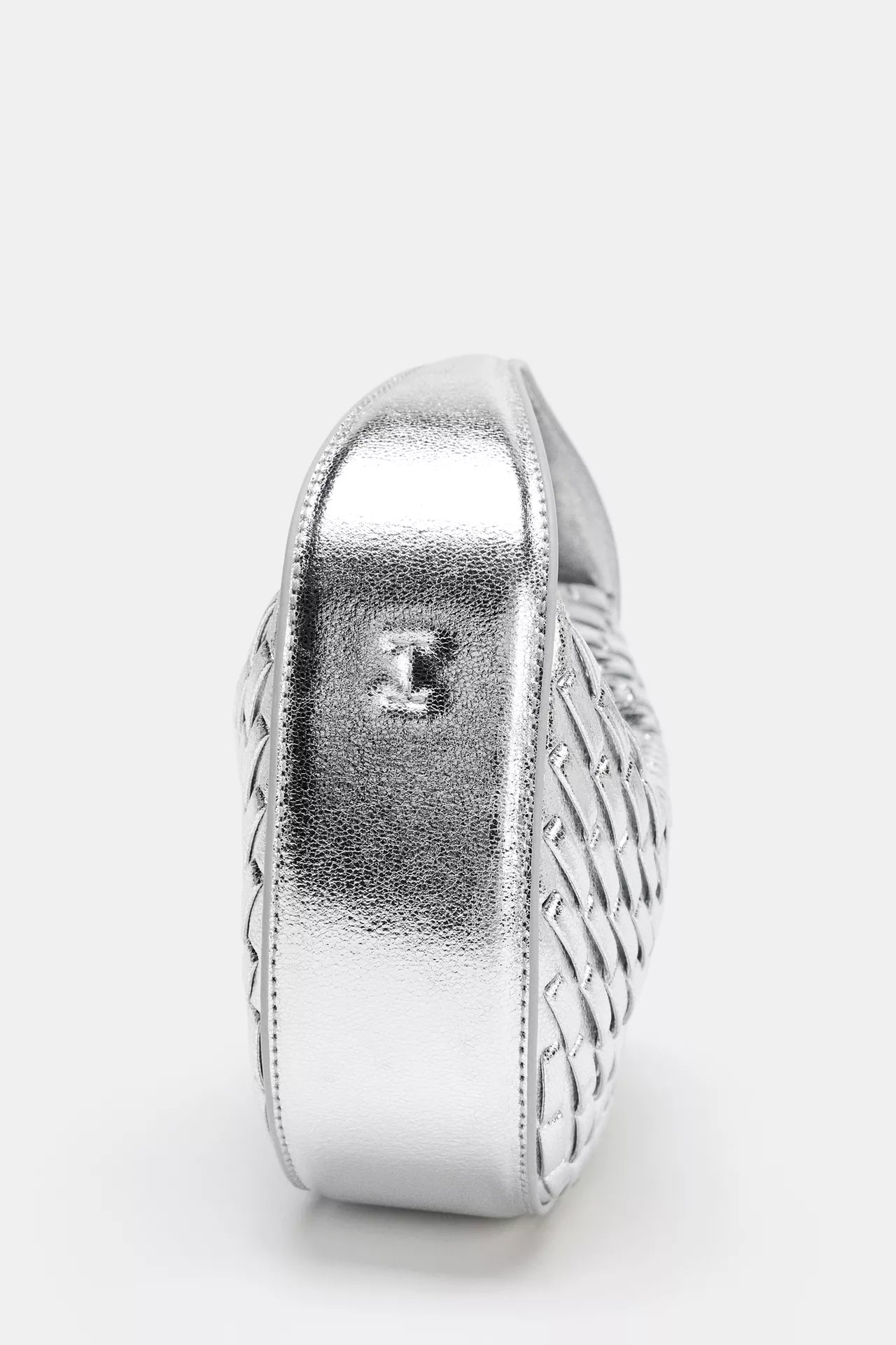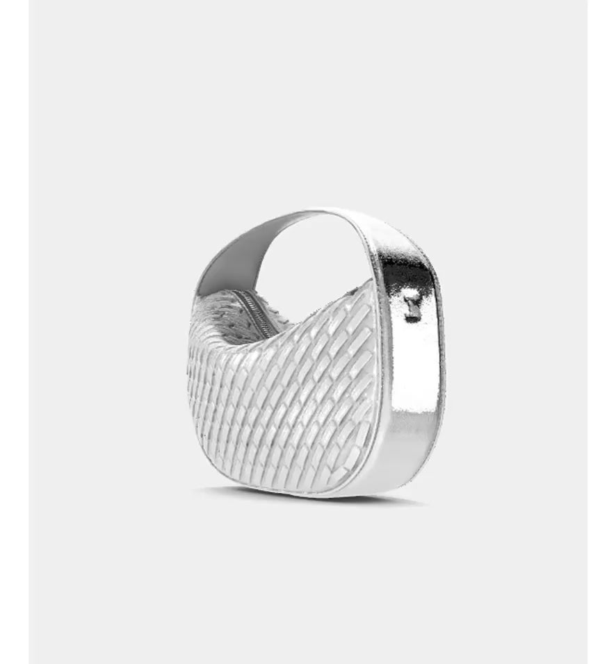 Mala de mão entrançada com efeito metalizado. Alça de mão larga.