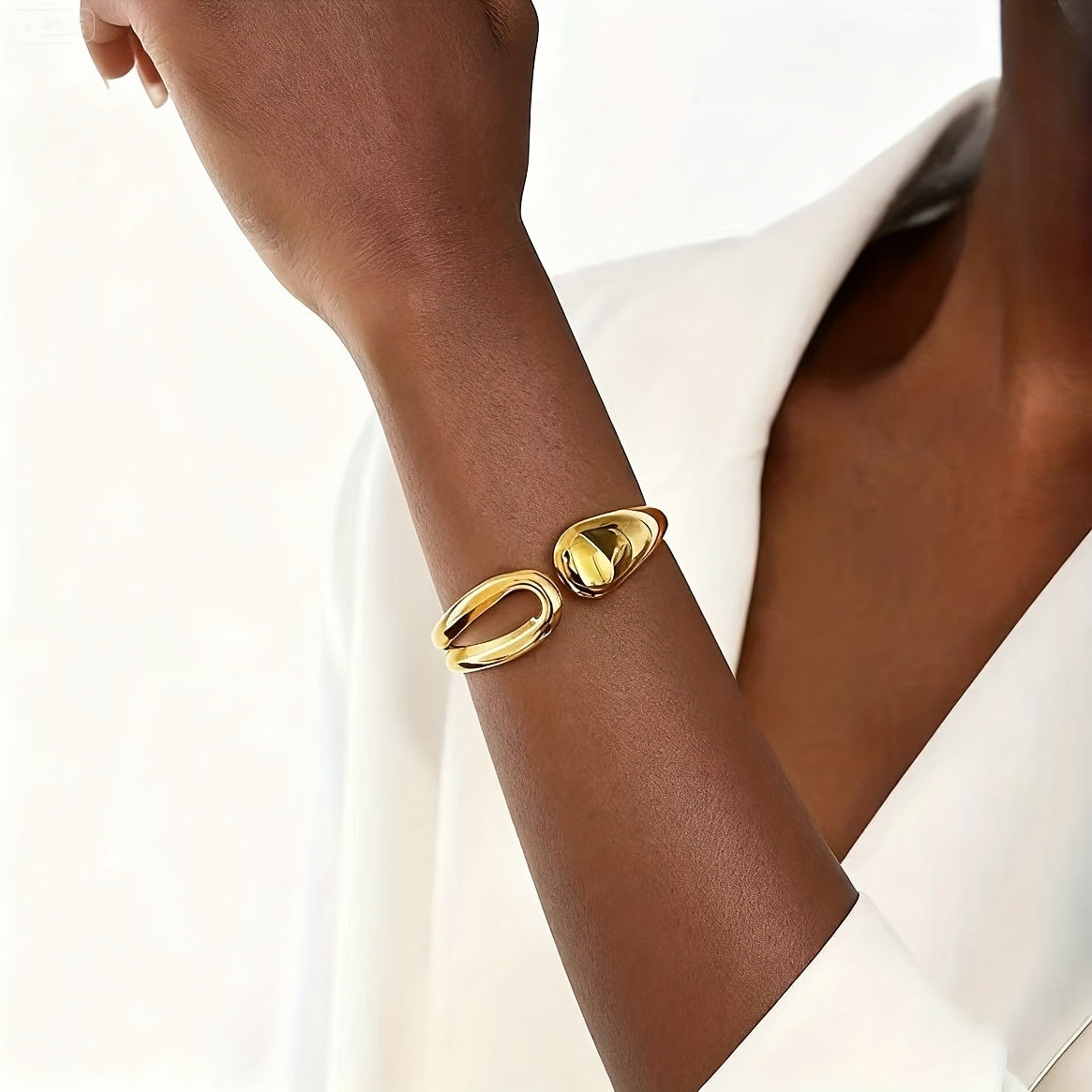 Feita em aço inoxidável banhado a ouro, é durável, resistente à oxidação, à água e ao desgaste diário. Leve e confortável, desliza facilmente no pulso, proporcionando um estilo chique sem esforço.